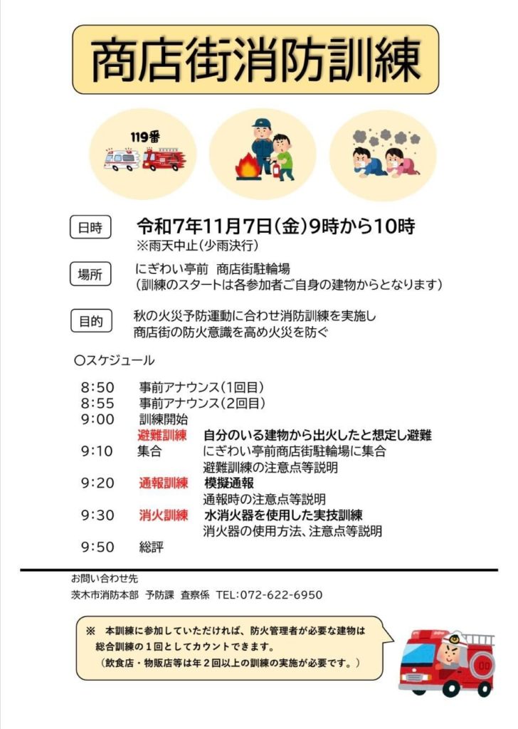 【参加者募集】11月7日(金)商店街消防訓練