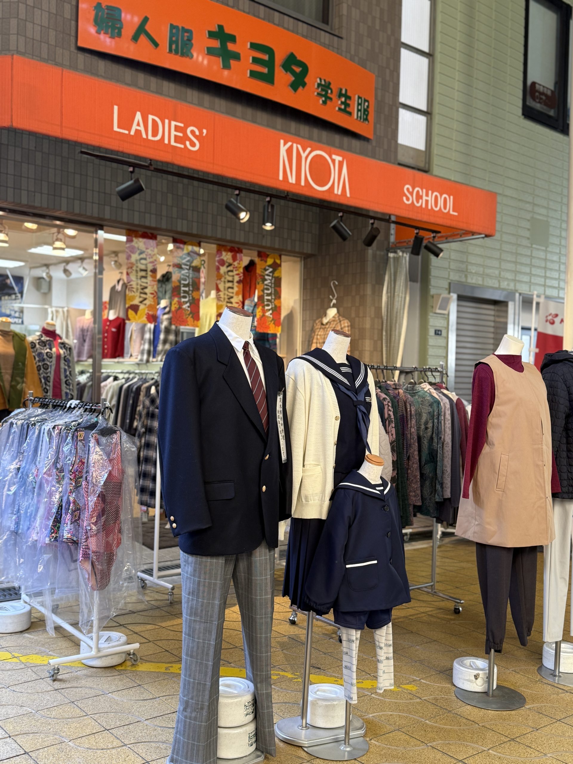 茨木神社の近く、本通商店街にある「清田商店」は、創業80年を迎える地域に根ざした衣料品店です。市内の幼稚園・中学校・府立高校の学校制服をはじめ、婦人服も幅広く取り扱っています。学びの心を大切に、品質の良い制服と丁寧なサービスで、長年多くのお客様に信頼されてきました。制服や商品のご相談、配達のご依頼なども専門知識を持つスタッフが丁寧に対応。地域に寄り添い、安心してご利用いただける老舗の衣料専門店です。